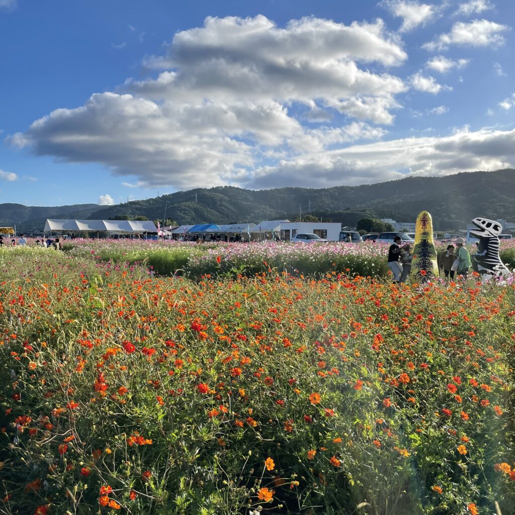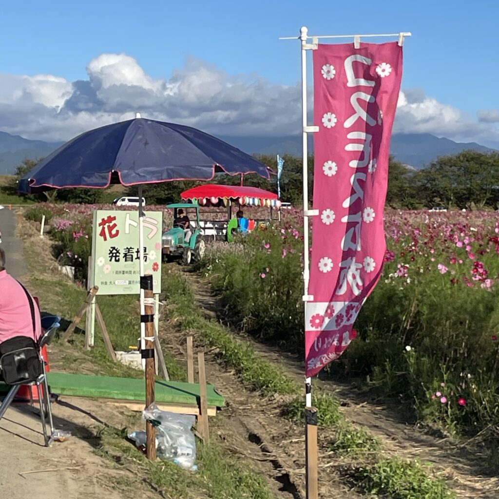 僕たち家族が行った時はちょうどコスモス祭りもやっていたので、出店や「花トラ」といううトラクターに乗ってコスモス畑の中を走ることもできました。