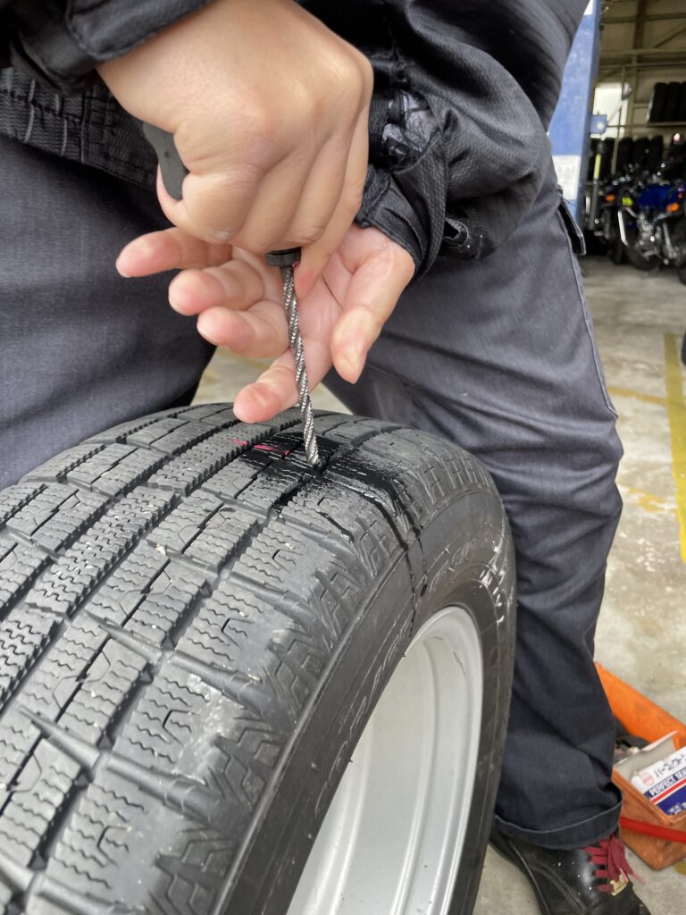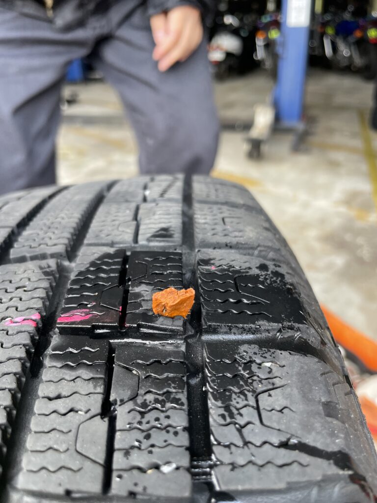 昨年もタイヤに釘が刺さってしまい、修理しているのです。。。。