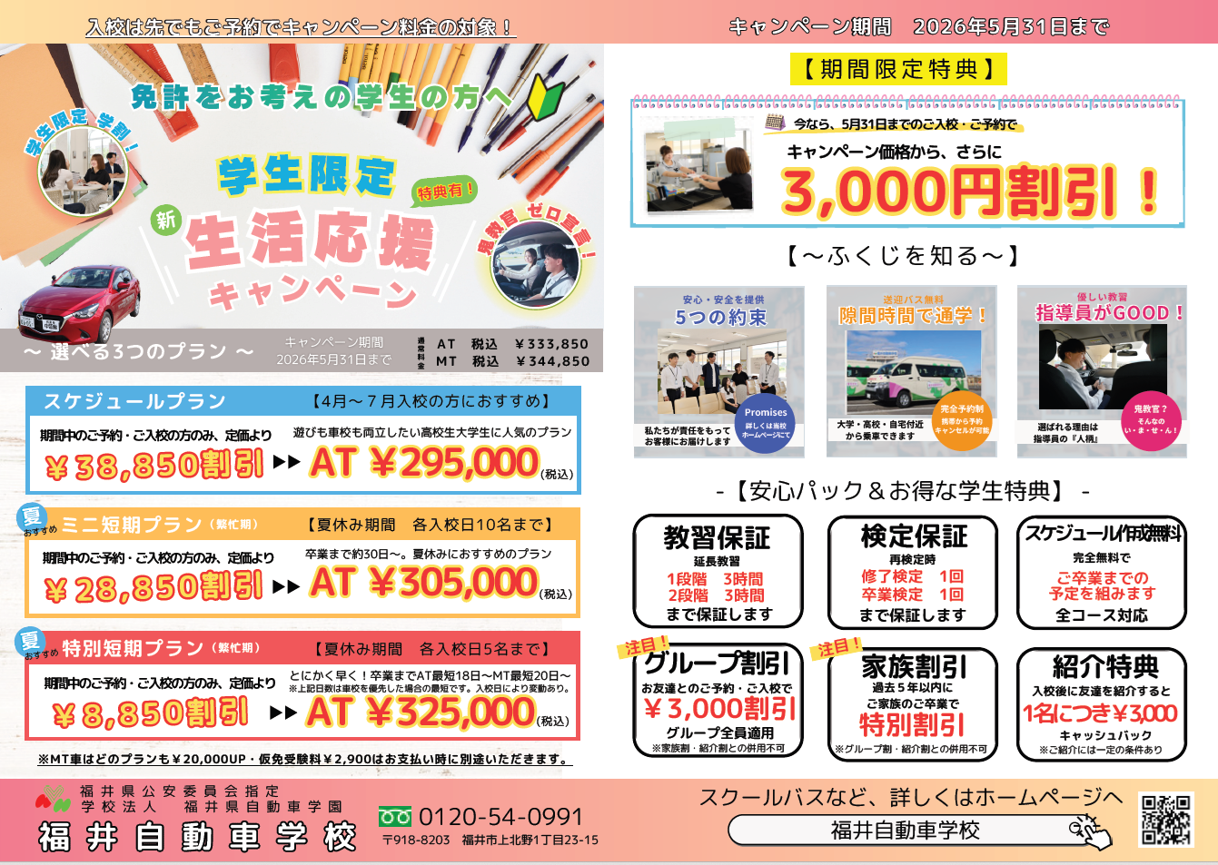 5月31日までのご予約・ご入校で最大38,850円割引 !!
