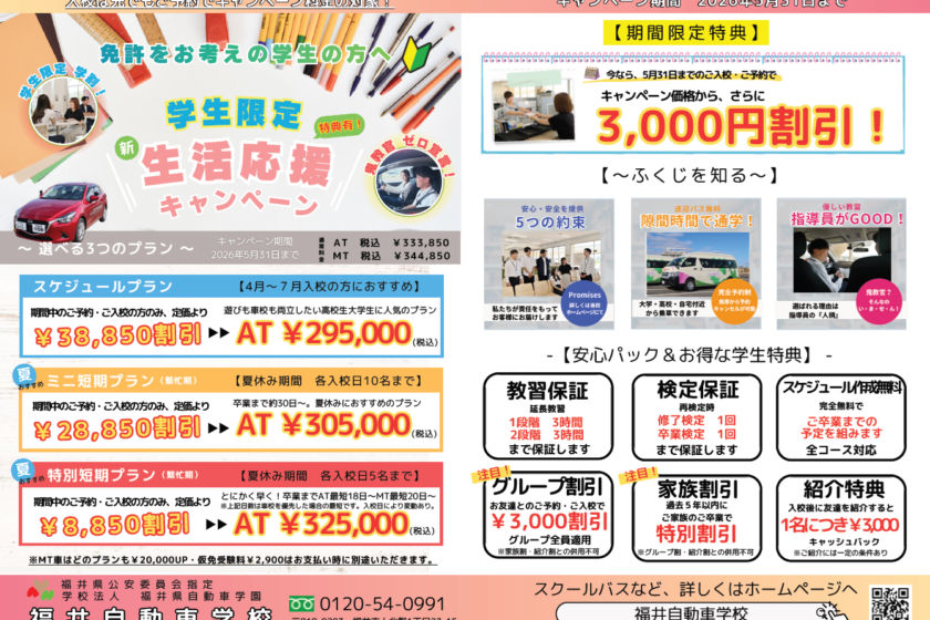 学生限定(普通車)キャンペーン実施中!