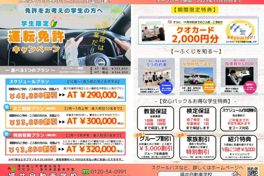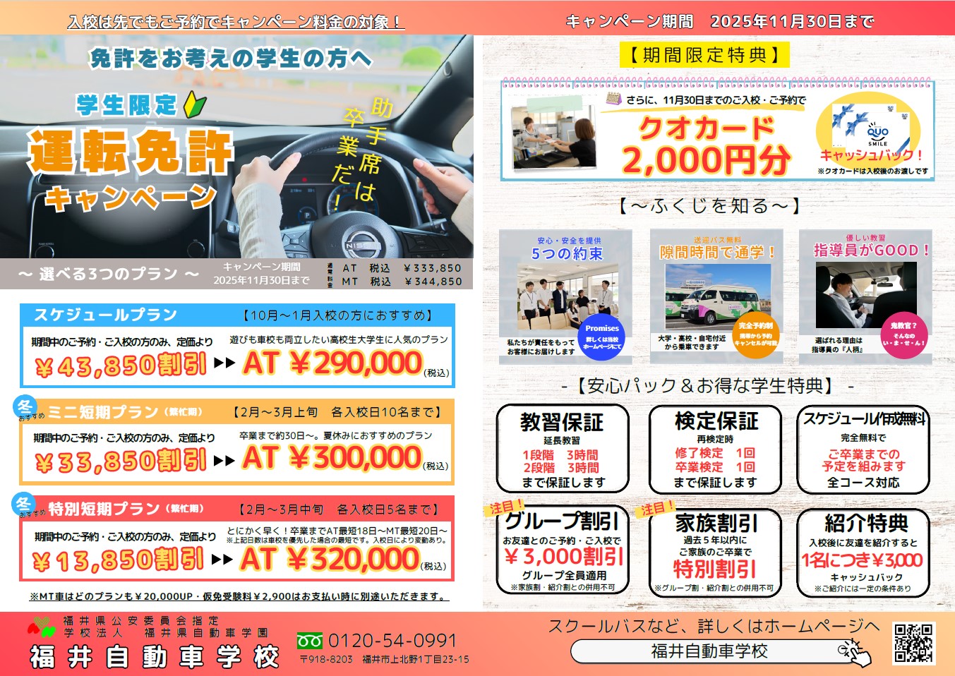11月30日までのご予約・ご入校で最大43,850円割引 !!