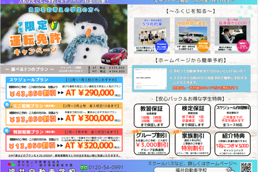 1月31日までのご予約・ご入校で最大43,850円割引 !!