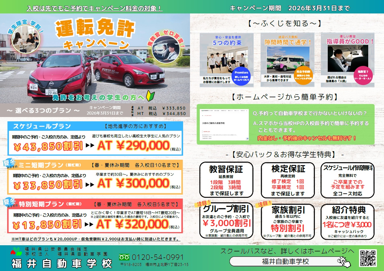 3月31日までのご予約・ご入校で最大43,850円割引 !!